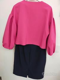 2) Giacchina fucsia con maniche a sbuffo Non so indicare né la taglia né il materiale ( sembra poliestere) perché l'etichetta è stata rimossa