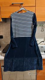 abito elegante in velour e cotone, blu/bianco, ml, gonna svasata. Petit Bateau, tg. L. euro 69. Nuovo con cartellino. perdetto per le feste natalizie