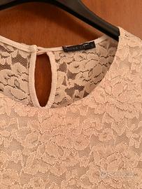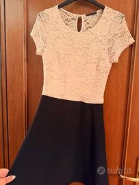 Abito misto pizzo panna e nero aderente nel pinto vita