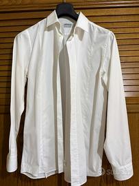 Abito elegnate uomo colore nero con camicia bianca. Composto da pantalone, gilet e giacca. Indossato due volte e ben conservato nella custodia originale. Taglia 52. Camicia 100% cotone, taglia collo 16-41 come da foto.