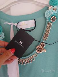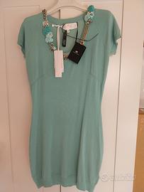 Bellissimo mini abito in maglina di Elisabetta Franchi nuovo con cartellino, tg 44, colore verde acqua, con applicazioni favolose.