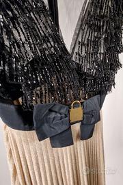 L'articolo è stato acquistato a prezzo pieno, a più di 600€; viene venduto con il cartellino originale, la sacca porta-abito, ed un sacchetto con alcuni ricambi originali per la parte lavorata a mano.