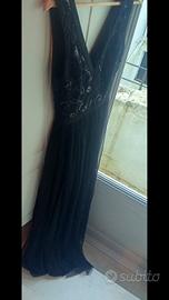 Abito EMO party Abito lungo nero in fine tulle con ricami e paillettes Scollo a V Ottima vestibilità sottoveste spacco laterale