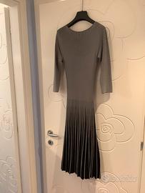 Abito Emporio Armani in maglia nero e grigio con gonna ampia adatto sia persone sottili che a persone piu robuste in quanto si adatta morbidamente al corpo.