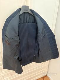 Abito gessato blu Ermenegildo Zegna TG 50 in leggerissima pura lana vergine, due bottoni.