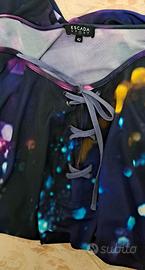 Abito Escada sport è un capo davvero elegante e sofisticato. Il design con la stampa di scintillio da un tocco moderno e interessante, mentre il tessuto in viscosa nero intenso aggiunge un'ulteriore eleganza. Il dettaglio della stropicciata è sicuramente un elemento distintivo che conferisce un'ulteriore caratteristica unica all'abito. Usato pochissimo infatti in ottime condizioni. Quest abito può essere un ottima scelta per un evento elegante o per un'uscita speciale. Taglia 42 ottima Vestibilità