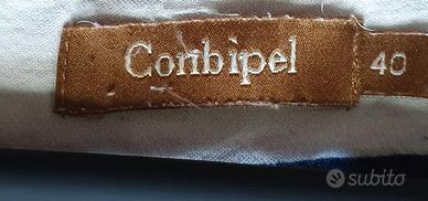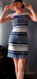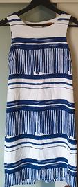 Abito estivo taglia 40, elegante e leggero, foderato. Bellissimo tessuto blu fantasia, 100% cotone.