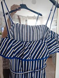 Bellissimo Abito in fresco cotone a righe con balza sul davanti,cinturino abbinato.
