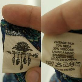 Abitino leggero stile Boho chic, tg.40, blu decorato con fantasie geometriche e floreali stilizzate. Con coulisse in vita, schiena nuda, si incrociano i laccetti sulla schiena e si allaccia dietro sul collo. Leggero e fresco è adatto anche com prendisole.