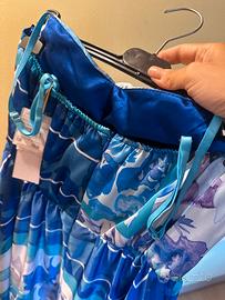 Abito lungo nuovo con spalline regolabili , imbottitura al seno e cerniera dietro, toni degli azzurri e dei blu taglia L