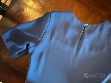 Abito blu elettrico, taglia M, manica corta, bottone sul retro, cerniera sul fianco, gonna morbida. Regalo assieme cintura elasticizzata di colore nero con simil brillanti.