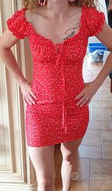 Abito estivo molto corto (meno di meta coscia) Tessuto fresco ed elasticizzato. Fiocco sul seno Si presenta come nuovo