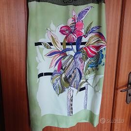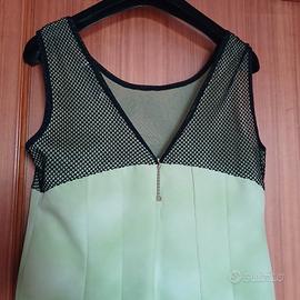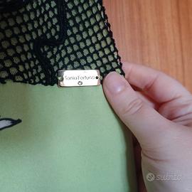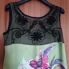 Vendo splendido abito smanicato, perfetto per la stagione estiva o per un’occasione speciale. Il capo si distingue per un raffinato inserto in rete nera e ricamata con fiori sulla parte superiore, che crea un elegante contrasto con la vivace stampa floreale tropicale sui toni del verde, rosa e viola. .La fantasia botanica centrale aggiunge un tocco artistico e moderno al design. Dettagli dell'articolo: Stile: Tubino morbido / Abito svasato. Dettagli: Scollo rotondo con lavorazione a rete e ricami floreali in rilievo. Tessuto elasticizzato Colore: Verde mela con grafica multicolore e dettagli neri. Condizioni: Nuove Occasione: Ideale per cocktail, cerimonie informali o uscite estive. Misure:50 cm da ascella ad ascella; 96 cm lunghezza dell'abito #abbigliamentodonna #moda #vestito #abito #outfitdelgiorno #shoppingonline #secondhand #vestitoestivo #modadonna #occasione #floralprint #tropicalstyle #fantasiafloreale #abitofloreale #dettaglipizzo #laceoutfit #stilebotanico #abitocolorato #lookfresco #chicstyle #soniafortuna #soniafortunafirenze #soniafortunafemme #soniafortunadress