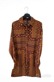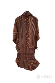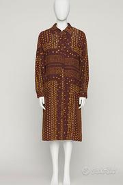 Abito lungo firmato Elly White in viscosa leggera, fluida e piacevole sulla pelle. Fantasia geometrica etnica nei toni caldi del bordeaux, arancio e giallo, per un look che cattura subito l’attenzione. Maniche lunghe e taglio dritto, ideale per uno stile boho chic o per un outfit casual ma ricercato. Stampa simmetrica e dettagli curati che valorizzano la silhouette con originalità e armonia. Perfetto per la mezza stagione o per aggiungere un tocco artistico anche alle giornate più grigie. Taglia M, vestibilità comoda e versatile. Condizioni eccellenti: come nuovo, indossato pochissime volte.