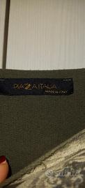 Abito fantasia con sfondo verde militare con tasche inserite, modello a palloncino. Adatto per primavera/autunno.