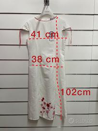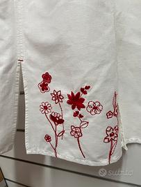 Abito misto lino con ricamo fiori di campo, 55% lino 45% cotone