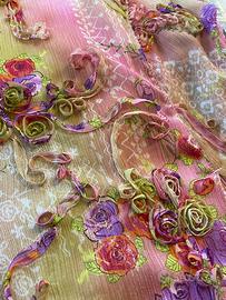 Bellissimo abito floreale, foderato, fiori in rilievo, made in italy, tessuto poliestere e fodera in cotone. Bambola Monella