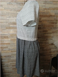 Abito leggero e fluido H&M con fantasia a zigzag bianco e nero, perfetto per la mezza stagione e l’estate. Linea morbida e confortevole, facile da abbinare sia in versione casual che elegante.