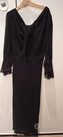 Abito di medi lunghezza con maniche a tre quarti trasparenti. Schiena semi scoperta. Taglia 38. tessuto, seta e viscosa