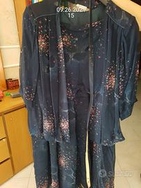 Abito da cerimonia per donna Abito + giacchino blu fantasie VESTITO L. 110 cm. con elastico e cintura Giacchino L.53 cm.con maniche¾