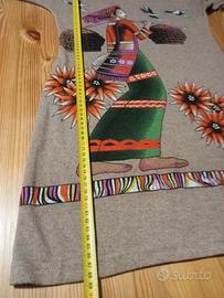 Abito dal brand Ginger + Soul modello morbido è confortevole,con stampa etnica, raffigurante una figura femminile stilizzata fiori e colombe,da indossare come miniabito o Maxi maglia.