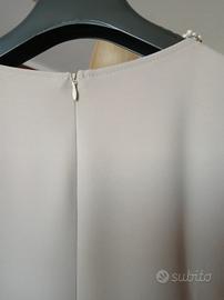 Abito elegante color beige, Made in Italy, taglio dritto senza maniche.