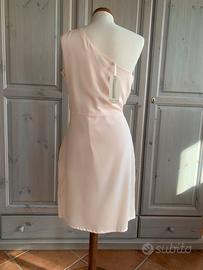 Abito monospalla color Cipria Taglia L Bustino con piegoni, ciondolo con logo e sottoveste.
