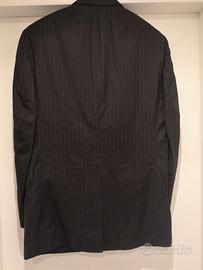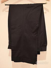 Abito sartoriale marca Jos. A. Bank originale Stati Uniti. Buono stato. 100% lana. Dotato di custodia originale. Taglia giacca Italia 52/54. Taglia pantaloni Italia 50. Taglia giacca USA44L. Taglia pantaloni USA 39L. Larghezza spalle da cucitura a cucitura 51 cm lunghezza manica 67 cm; lunghezza della giacca 86 cm; lunghezza pantaloni 108 cm, lunghezza della vita dei pantaloni 46 cm larghezza coscia pantaloni 31 cm