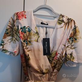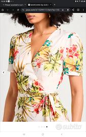 vestitino maniche corte in crepe, originale Guess, nuovo, mai indossato, ancora con cartellino e sigillo protettivo del marchio Guess, taglia 40, interno foderato, sottogonna, scollo a v incrociato, chiusura con zip laterale.