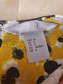 Abito H&M, taglia 36, colori nero, giallo e senape, ai fianchi ha due passanti per, eventualmente, inserire una cintura da vita, misure in foto.