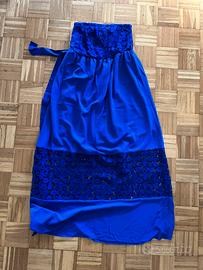 Vendo abito lungo di Imperial, colore vlu elettrico con dettagli in pizzo nel top e nella parte finale del vestito. Peesenta una cinta in tessuto sotto la vita. Taglia S/M.