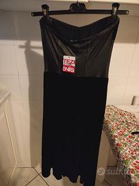 Abito nero senza spalline in ciniglia ed ecopelle donna Tezenis Nuovo, con cartellino Taglia S