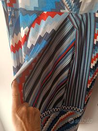 Abito in jersey di viscosa fantasia geometrica nei colori blu navy- cobalto - azzurro polvere - grigio - rosso.