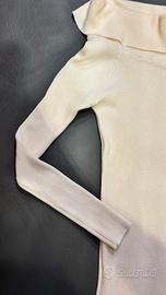 • Scollo a barchetta (Off-the-shoulder): l'ampio risvolto sulle spalle può sia incorniciare che il décolleté, lasciando le spalle leggermente scoperte, sia essere usato come scalda collo morbido.