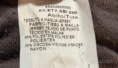 Stile: Abito a maniche lunghe con orlo asimmetrico e una sezione superiore strutturata a pieghe fini che scende in un drappeggio laterale.