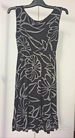 Abito in maglina di viscosa, nero con fiori stilizzati grigi, comodo e fresco, taglia M.