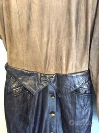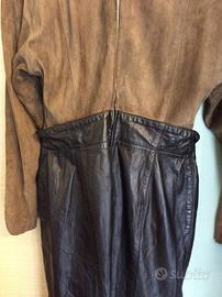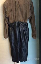 • Abito in Pelle 100% - Metà Camoscio - Metà Pelle • Colore: Nero-Tortora Taglia: 44