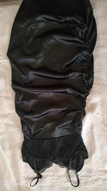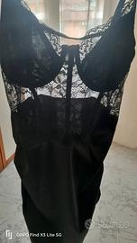 vendo abito midi con corpetto in pizzo e gonna arricciata in raso elasticizzato colore nero taglia l.. bellissimo indossato