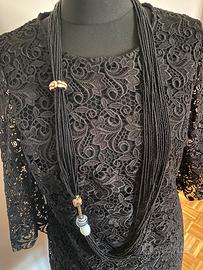 Bellissimo abito alta moda Indossato 1 volta Foderato naniche trasparenti 3/4 Regalo collana abbinata