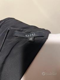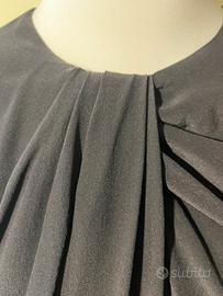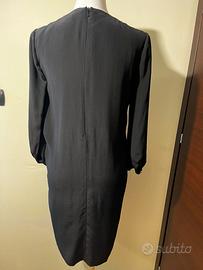 Abitoin pura seta campionario marchio conosciuto come si vede da foto. Lavorazione pieghe sul davanti. Vestibilità morbida molto bello portato con cintura in vita. Zip con logo, manica con polsino e bottone con logo.tg 40. Lungh. Abito cm 96, spalle cm 40, lungh. Maniche cm 50. Largh petto tot. Cm 98