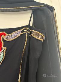 Bellissimo abito nero in seta da cerimonia con applicazione di perline sul seno , completo di stola nera in seta tg 48