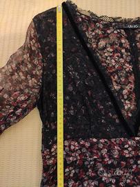 abito in seta con scollo a V fantasia sfondo nero, morbido