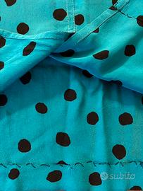 Vendo elegante abito in pura seta color turchese con pois neri.