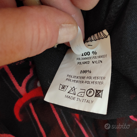 Abito intero donna foderato taglia M ( corrisponde a una 44,,) con rouches tra la scanalatura del seno e sottili nastri di tre colori a sottolineare il sottoseno