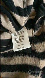 Vestitino over soffice, caldo e morbido firmato Dixie, con righe orizzontali nere e beige, maniche che arrivano al gomito e piccolo spacco laterale: può essere indossato anche con una t-shirt sotto e dei leggings.