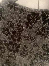 Abito invernale manica corta elegante . Grigio scuro con fiori neri