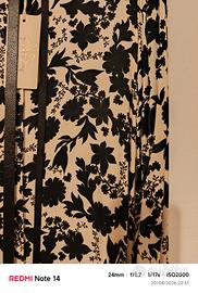Abito lungo seta Kikisix nero e bianco fantasia fiori 2 tipi cintura molto raffinato bottoni frontali con spacco frontale