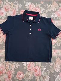 Abito La Martina in cotone blu con dettagli rosa. Mai indossato, tenuto benissimo. Taglia 2 donna che corrisponde alla Small. Prezzo trattabile.