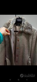 Abito giacca e gonna La Perla, marrone con collo smontabile. Elegante, chiusura con bottoni, foderato in seta. Tessuto leggermente lucido con inserto lurex nella trama.