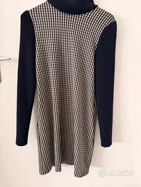 Abito di Max&Co a quadretti con maniche tinta unica nera elasticizzate e collo alto cannettato, tasche laterali nascoste, lunghezza 88 cm, larghezza spalle 36 cm. Taglia L.